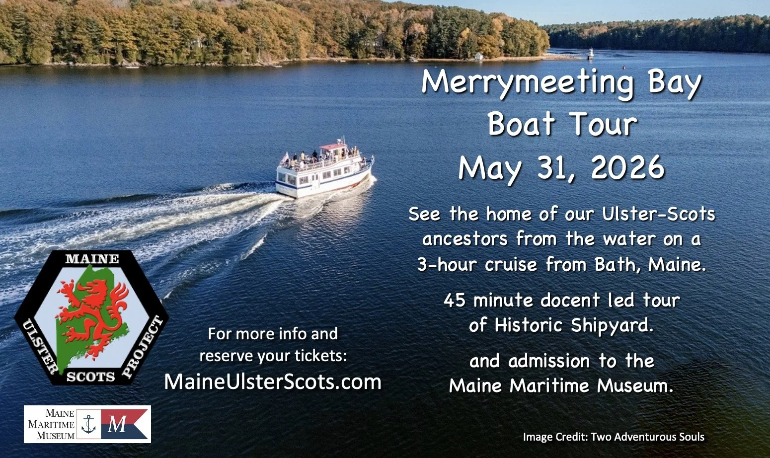 Don’t miss out on this opportunity to further explore our Ulster-Scots heritage along the Kennebec River. Upon receipt of your RSVP, we’ll email further info and times.