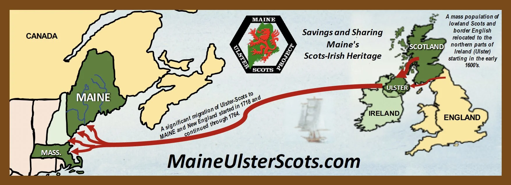 Many have read the story of the five ships in Boston Harbor in August of 1718. That event was reported in the Boston newspapers of the time and became the first page of the story about the great immigration of Ulster-Scots to the New World. Our goal is to add many more pages to that story – specifically our Maine story.